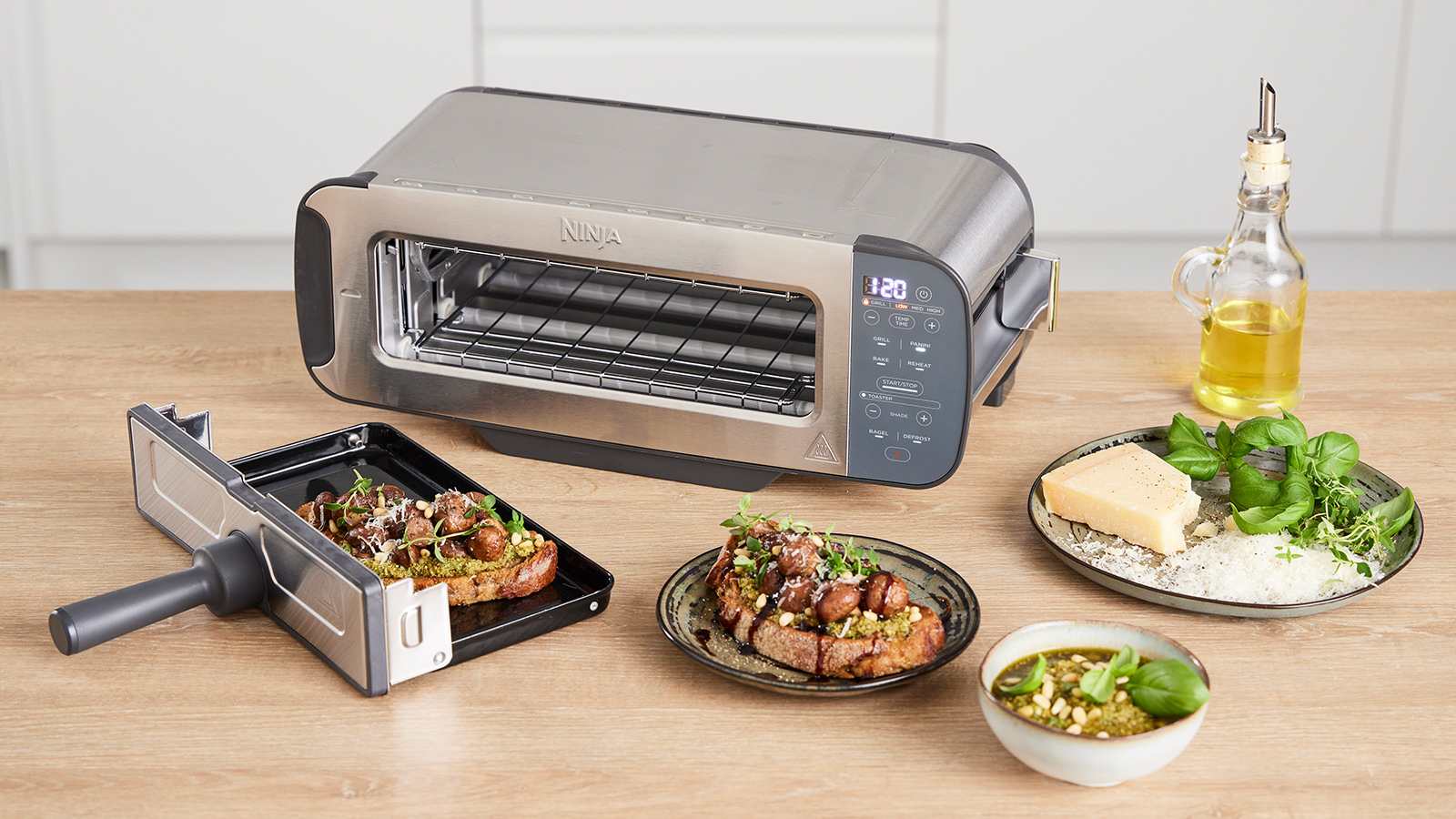 Rist dit yndlingsbrød, bagels og crumpets til perfektion, når de er placeret lodret i Toaster mode (Riste-tilstand). Nyd jævn, kant-til-kant-ristning med 7 nuanceindstillinger. Læg den derefter ned for at forvandle den til vandret Grill mode (Grill-tilstand) så du kan bage, grille og meget mere.