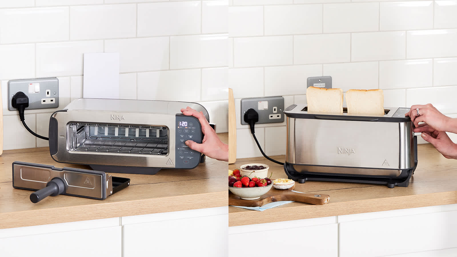 - Den medfølgende bageplade omdanner brødristeren til en lukket ovn